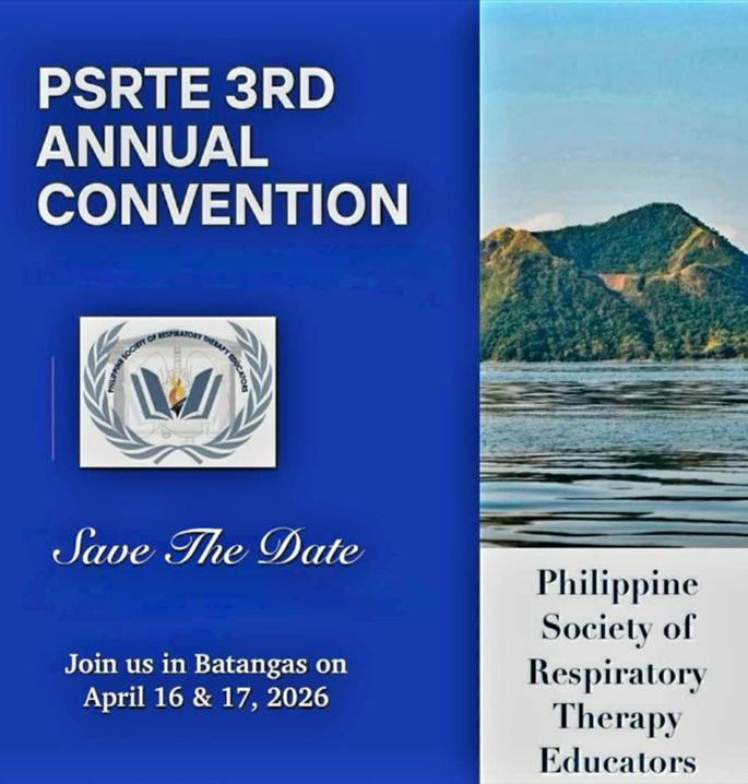 APRIL 16-17, 2026 - Join us for the 3rd PSRTE National Convention in Batangas! Get ready to connect, learn, and be inspired as respiratory therapy educators from across the nation gather for this year’s most anticipated event! Don’t miss the chance to share insights, celebrate achievements, and advance excellence in respiratory therapy education. Stay tuned for more details and registration updates — see you in Batangas!
