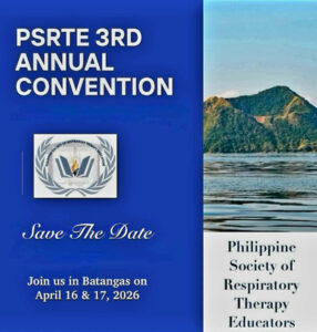 APRIL 16-17, 2026 – Join us for the 3rd PSRTE National Convention in Batangas! Get ready to connect, learn, and be inspired as respiratory therapy educators from across the nation gather for this year’s most anticipated event! Don’t miss the chance to share insights, celebrate achievements, and advance excellence in respiratory therapy education.